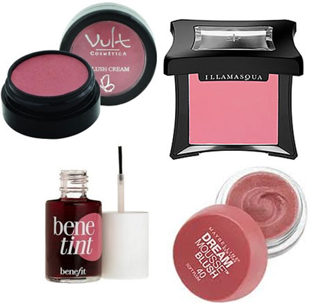 Para mim, blushes líquidos, cremosos e em mousse são a melhor opção nesse momento – novamente porque dispensam o pincel para aplicar. É só espalhar nas bochechas com os dedos. Fora que, normalmente, é fácil achar blushes em creme sem glitter, ótimos para o dia a dia. Um exemplo disso é o da Vult, ótimo custo-benefício, mas tem lugares como na minha cidade que o que mais se acha são os blushes em pó, então tem que tomar cuidado ao deixar na sua bolsa ( de preferência guarde em uma necessárie ) por que eles se quebram e você pode acabar sujando tudo e o que era pra se tornar fácil dá um imenso trabalhão.